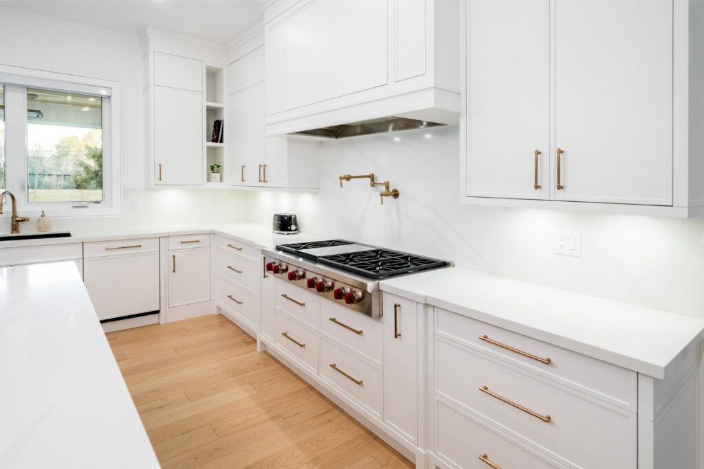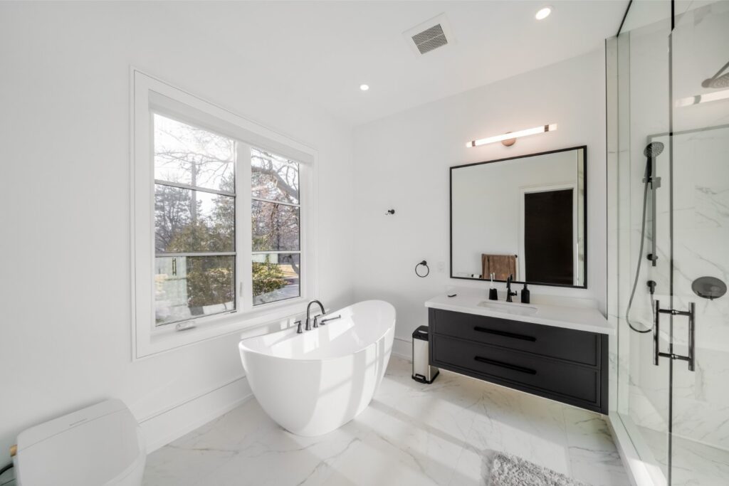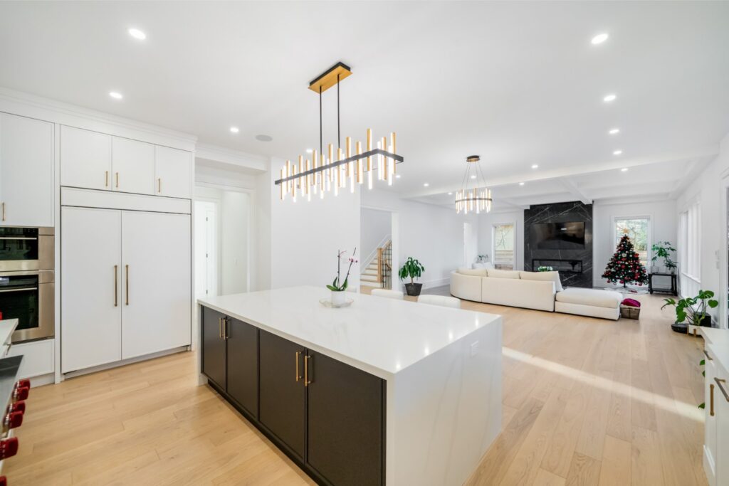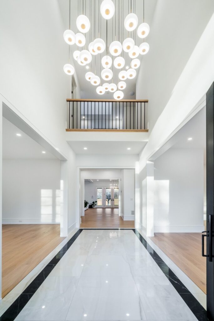 This 8,000 sq ft transitional home was completed in 10 months, balancing clean design with comfort. The double-height foyer and statement lighting set the tone, while 10 ft ceilings and wide-plank flooring carry a sense of ease throughout. With 6 bedrooms and 8 bathrooms, the layout feels open yet grounded. Heated tile floors in every bathroom, a built-in sauna, and a fully heated basement slab add thoughtful comfort. Custom finishes, Wolf and Sub-Zero appliances, and a glass-enclosed gym space round out the details. Every corner of the home is quietly elevated—designed to feel easy, natural, and exactly as it should be.